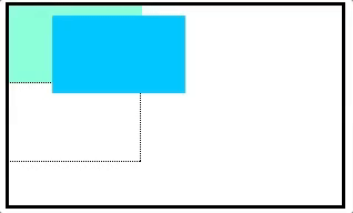 위 코드에서, 아래 쪽 박스는 부모 요소의 왼쪽 위를 기준으로 아래로 20px, 오른쪽으로 50px 만큼 떨어지게 된다. 만약 오프셋 속성이 정의되지 않으면, 위쪽 박스는 올라온 아래쪽 박스에 의해 완전히 덮이게 될 것이다. 다음 gif 그림은 새롭게 배치된 box-level 요소를 보여주고 있다